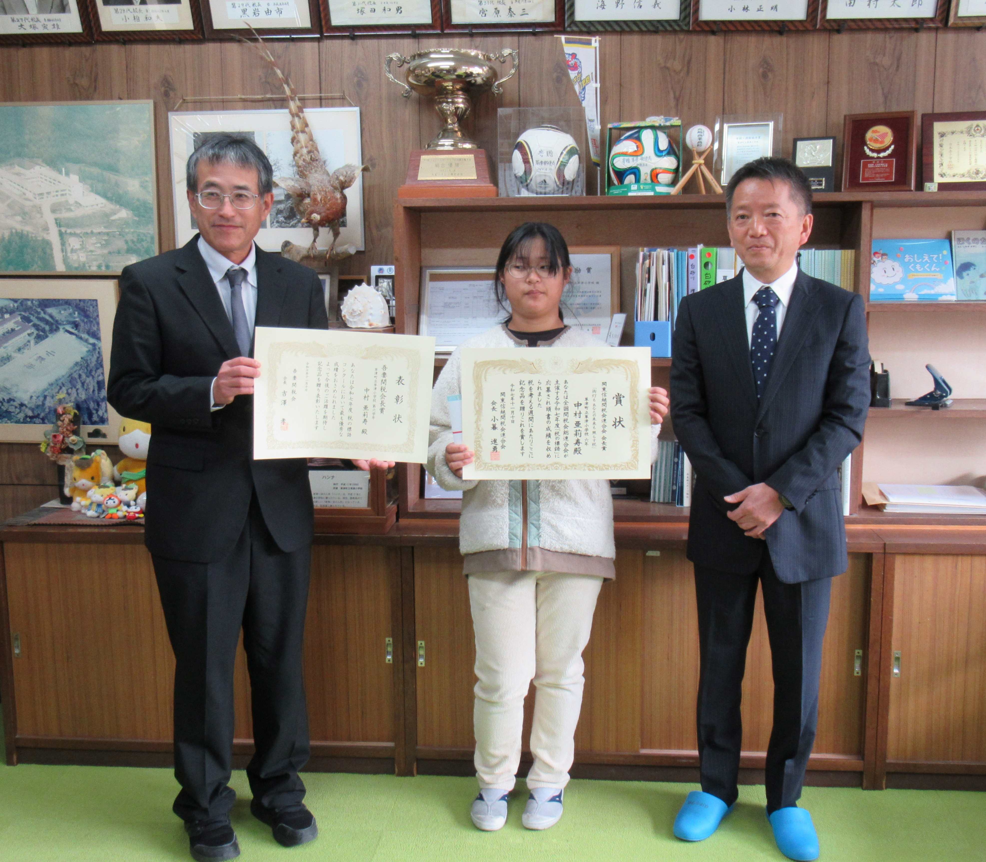 | 「税の標語」の受賞に併せ、令和6年11月8日(金)中之条小学校において表彰式を開催し、中之条税務署長並びに吾妻間税会長より受賞者4名に表彰状及び副賞が手渡されました。 なお、草津小学校の受賞者については、校長先生からの表彰状授与とさせていただきました。 |